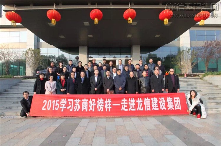 2015年12月29日,蘇商會“學習蘇商好榜樣”走進龍信建設集團。新城控股集團、恒通建設集團、通光集團、中聯世紀建設集團40多位年產值超過十億的企業家齊聚海門,與集團董事長陳祖新一起,開啟一場以創新管理助推建筑企業轉型的“破冰”之旅。