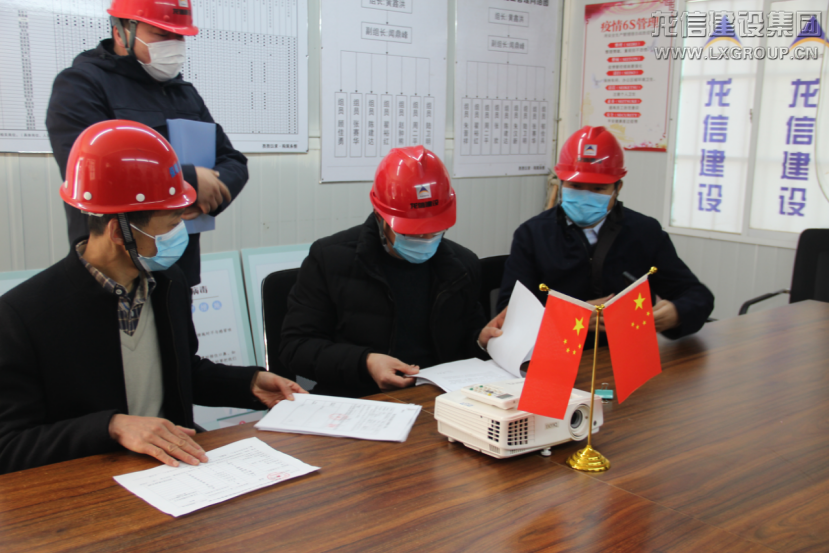 現場檢查結束后,龍信集團黨委書記、董事長陳祖新在項目部會議室對疫情防控和復工、安全生產等進行再部署、再細化。他指出,要堅決貫徹中央和省市委要求,嚴格落實項目現場防疫管控工作,細化落實項目部封閉式管理中人員和車輛進出通道設置、進場人員個人健康情況監測和個人防護措施檢查、外地勞務人員情況排查、安全生產等加強管理,嚴格落實復工標準,盡可能降低疫情造成的影響,確保疫情防控和復工復產兩不誤、雙促進,建好房、力促百姓安居樂業。
