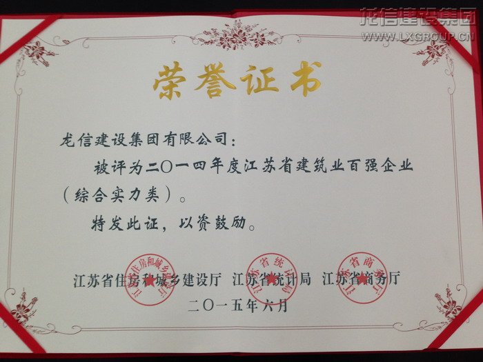 龍信集團(tuán)獲2014年度全省建筑業(yè)“百?gòu)?qiáng)企業(yè)”綜合實(shí)力百?gòu)?qiáng)榜第六位